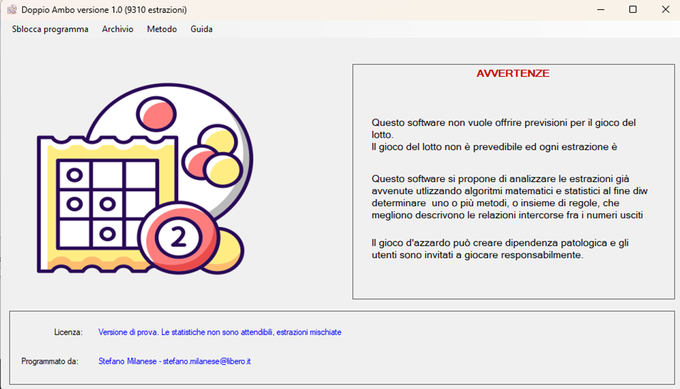 Fantastico software per la creazione dei propri metodi. Dall'ambata agli abbinamenti per ambo, terno, quaterna e cinquina.